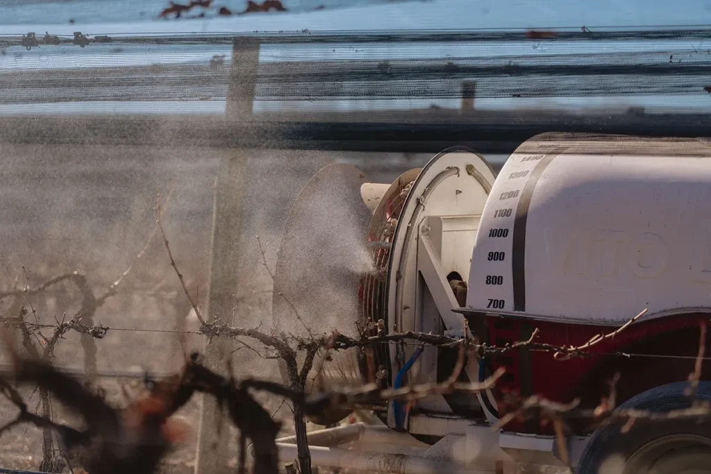 Contamos con un sistema de tratamiento de efluentes que nos permite reutilizar el agua residual del proceso de vinificación para riego, optimizando el uso de los recursos hídricos. Este sistema se complementa con tecnologías de riego eficiente, como el goteo y la fertirrigación, y con la valorización de subproductos del viñedo y la bodega, entre ellos el orujo y los restos de poda.