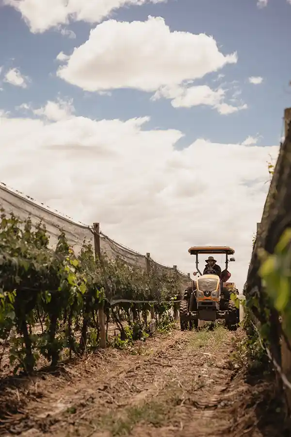 Viticultura de precisión con maquinaria de última generación que garantiza el cuidado del entorno y la calidad de cada uva, enfocándonos en la recepción de cosecha mecánica.